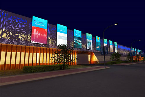 室內(nèi)空間利用,原空間為體育館,這里運用了多種材料,在現(xiàn)代感、科技感十足的材料語言中,找到一種將科技與工業(yè)結(jié)合的形式,成為企業(yè)會客廳。根據(jù)22家戰(zhàn)略合作伙伴不同類型做出獨樹一幟的展示效果,結(jié)合數(shù)字化的先進展示手段,將產(chǎn)品信息與形象呈現(xiàn)在觀眾面前。