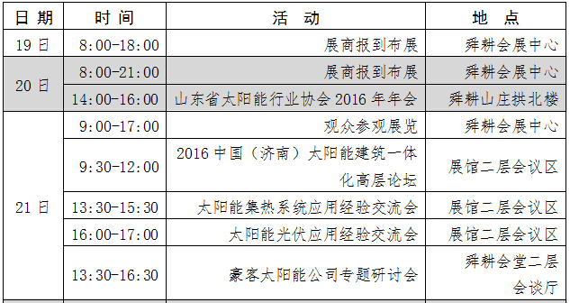 第十一屆中國(guó)(濟(jì)南)國(guó)際太陽(yáng)能利用大會(huì)于2016年4月21-23日在濟(jì)南舜耕國(guó)際會(huì)展中心舉辦。隨著太陽(yáng)能熱利用行業(yè)的轉(zhuǎn)型升級(jí)和光伏產(chǎn)業(yè)的迅猛發(fā)展,我國(guó)太陽(yáng)能產(chǎn)業(yè)進(jìn)入新的歷史發(fā)展階段。正基于此,本屆大會(huì)緊緊把握行業(yè)發(fā)展脈搏,將光伏發(fā)電、光熱利用作為大會(huì)兩大獨(dú)立板塊,專(zhuān)項(xiàng)運(yùn)行、專(zhuān)業(yè)活動(dòng)、專(zhuān)題展示,并在展會(huì)功能、組織力量、會(huì)議論壇、國(guó)際化程度、買(mǎi)家邀請(qǐng)措施、精準(zhǔn)對(duì)接等方面進(jìn)行全方位創(chuàng)新升級(jí),務(wù)求為客商提供高價(jià)值的參會(huì)回報(bào)。