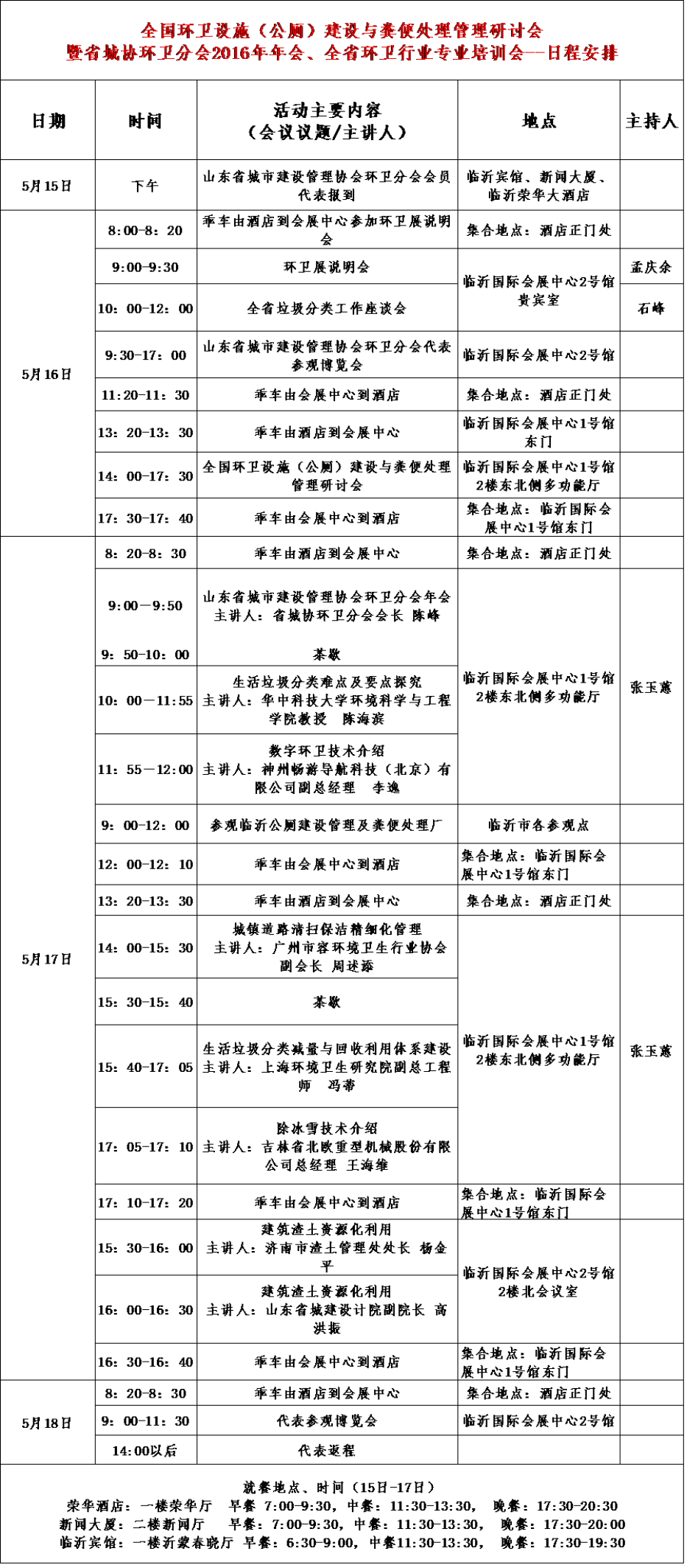 ’2016山東省第九屆城鄉(xiāng)環(huán)境衛(wèi)生新技術(shù)新設(shè)備新工藝博覽會(huì)—中國(guó)環(huán)衛(wèi)產(chǎn)業(yè)旗艦展將于5月16-18日在山東省臨沂國(guó)際會(huì)展中心召開,作為國(guó)內(nèi)環(huán)衛(wèi)行業(yè)頂尖的交流盛會(huì),本屆博覽會(huì)展出面積達(dá)2.2萬(wàn)平方米,為歷屆之最。來(lái)自全國(guó)23個(gè)省份的逾百家品牌企業(yè)參展,集中展示了垃圾收集/清運(yùn)、市容環(huán)境保潔、垃圾分類、環(huán)保廁所與糞便處理、除冰雪等領(lǐng)域最前沿的技術(shù)及產(chǎn)品、最頂尖的解決方案。