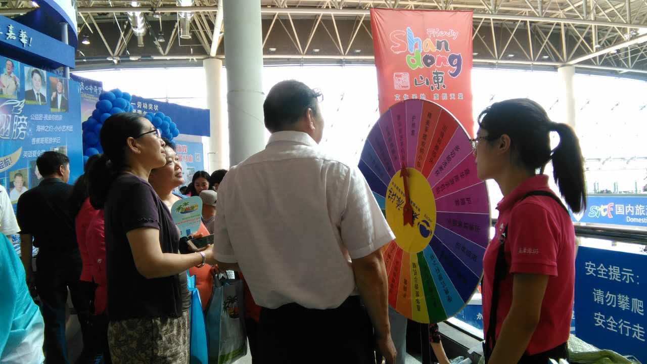 另外,各參展企業(yè)現(xiàn)場(chǎng)還紛紛組織了觀眾微信搶紅包、現(xiàn)場(chǎng)抽獎(jiǎng)、幸運(yùn)大轉(zhuǎn)盤、砸金蛋等互動(dòng)活動(dòng),并為到會(huì)觀眾準(zhǔn)備了豐厚的紀(jì)念品和獎(jiǎng)品。觀眾不僅有機(jī)會(huì)免費(fèi)領(lǐng)到景區(qū)門票、自拍桿、卡通玩偶等紀(jì)念品。還可有機(jī)會(huì)獲得上海迪士尼門票、掃地機(jī)器人、免費(fèi)機(jī)票等獎(jiǎng)品。
