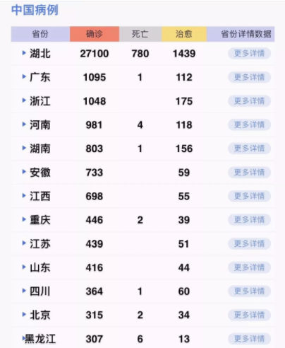 據(jù)31個?。ㄗ灾螀^(qū)、直轄市)和新疆生產(chǎn)建設(shè)兵團報告,現(xiàn)有確診病例33738例(其中重癥病例6188例),累計治愈出院病例2649例(黑龍江核減1例),累計死亡病例811例,累計報告確診病例37198例(山西、黑龍江、河南、海南各核減1例),現(xiàn)有疑似病例28942例。累計追蹤到密切接觸者371905人,尚在醫(yī)學(xué)觀察的密切接觸者188183人。