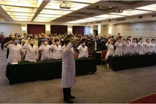 1月27日,在武漢市蔡甸區(qū)執(zhí)行新型冠狀病毒肺炎疫情援助任務(wù)的遼寧省醫(yī)療隊,成立臨時黨支部,全體醫(yī)護(hù)人員向黨旗鄭重宣誓,堅決打贏新冠肺炎疫情防控阻擊戰(zhàn)。