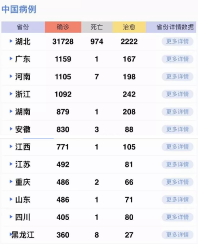 據(jù)31個?。ㄗ灾螀^(qū)、直轄市)和新疆生產(chǎn)建設(shè)兵團(tuán)報告,現(xiàn)有確診病例37626例(其中重癥病例7333例),累計治愈出院病例3996例(浙江核減1例),累計死亡病例1016例,累計報告確診病例42638例(浙江核減12例,江西核增1例),現(xiàn)有疑似病例21675例。累計追蹤到密切接觸者428438人,尚在醫(yī)學(xué)觀察的密切接觸者187728人。