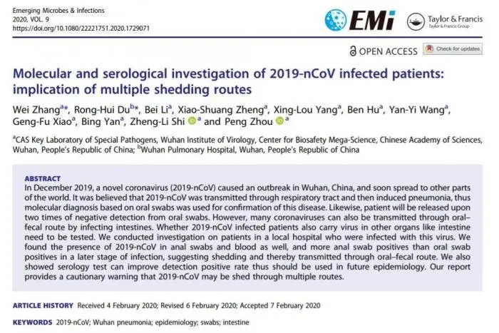 ▲發(fā)表于國際期刊《新發(fā)微生物與感染》2020年第九期的相關(guān)文章
