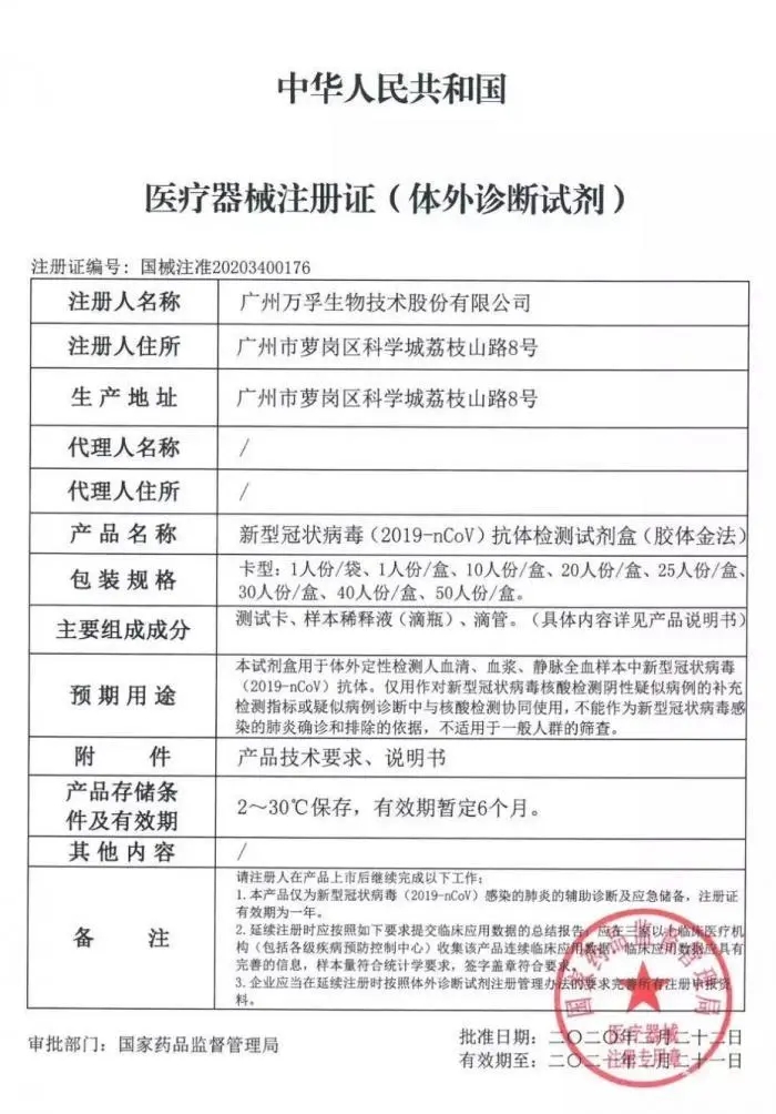 據(jù)萬孚生物透露,本次率先獲得注冊證的新型冠狀病毒(2019-nCoV)抗體檢測試劑盒(膠體金法),用于體外定性檢測人血清、血漿、全血樣本中新型冠狀病毒(2019-nCoV)IgM/IgG抗體,操作簡單,15分鐘即可肉眼判讀結(jié)果,可為新冠肺炎疑似患者提供快速檢測手段。