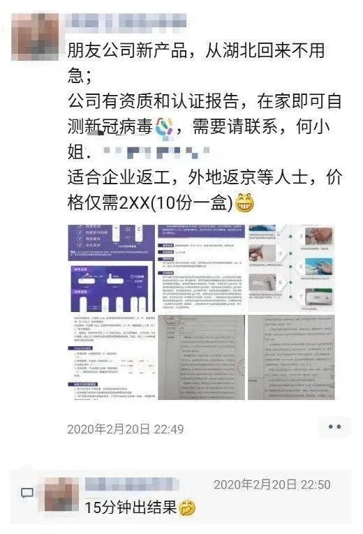 不少微商均在兜售這種試劑盒,并宣稱“一滴血15分鐘就能出結(jié)果”,讓其成為熱議焦點: