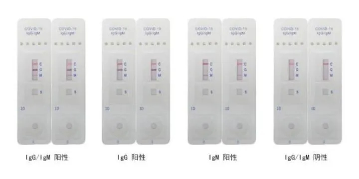 經(jīng)大量實驗室以及臨床樣本驗證,表明IgM/IgG雙指標快速診斷膠體金試劑,最快2分鐘完成檢測。該檢測操作簡便,無需儀器,只需10 μL指尖全血滴入檢測孔,對感染3-7天的樣本即可檢出,準確率97%以上,從而極大降低檢測時感染風(fēng)險。檢驗抗體呈陽性結(jié)果則表明:患者當(dāng)前處于感染狀態(tài)或既往感染。
