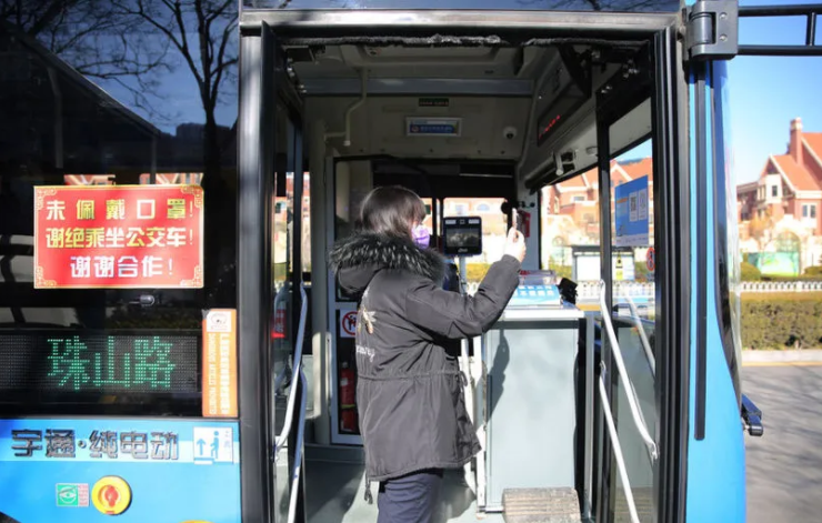 2月18日,按照駕駛員提示,乘客上車后掃碼“青島市交通出行同乘信息系統(tǒng)”,確認乘客信息。(張進剛 攝)