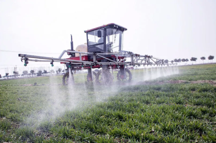 2月20日,山東省臨沂市郯城縣郯城街道三井村村民在麥田間噴灑農(nóng)藥。(張春雷 攝)