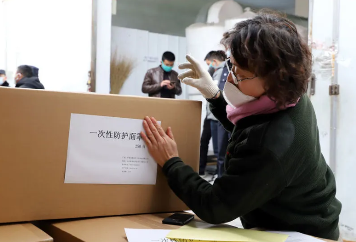1月27日,山東平度緊急支援武漢的2萬套護目鏡醫(yī)療物資打包起運。(李曉萌 攝)
