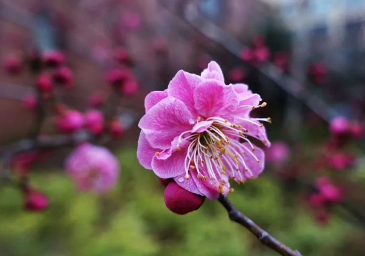 2月24日,山東省棗莊市山亭區(qū)盛開的紅梅花上掛滿雨珠。當(dāng)日,山東多地迎來一次降雨天氣過程,花朵在雨水的滋潤下格外嬌艷。(李宗憲 攝)