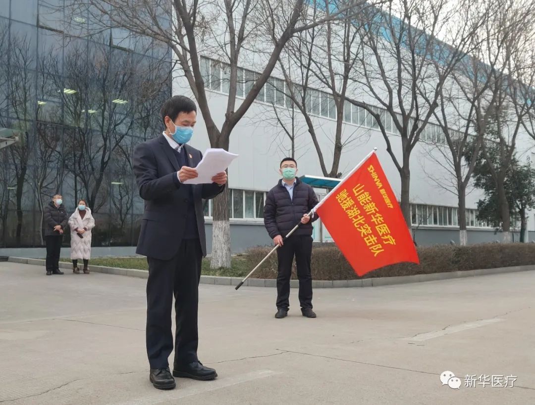 3月6日,山能新華醫(yī)療黨委書記、董事長(zhǎng)許尚峰將“山能新華醫(yī)療馳援湖北突擊隊(duì)”旗幟授予8人突擊隊(duì)隊(duì)長(zhǎng)李昌隆。隨后,一套移動(dòng)式醫(yī)療廢物處理設(shè)備連同山能新華醫(yī)療馳援湖北突擊隊(duì)從新華醫(yī)療醫(yī)用環(huán)保公司出發(fā),駛向武漢。