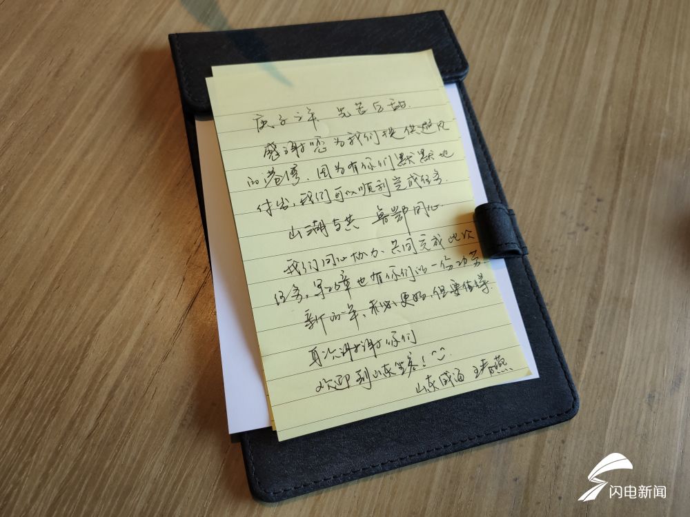 打掃完房間后,王春燕在酒店里留下一封感謝信。她說,自己和隊(duì)員們在武漢期間受到酒店工作人員不少照顧,內(nèi)心十分感謝他們的付出。在結(jié)尾處,王春燕這樣寫道:“再次感謝你們,歡迎到山東做客!”