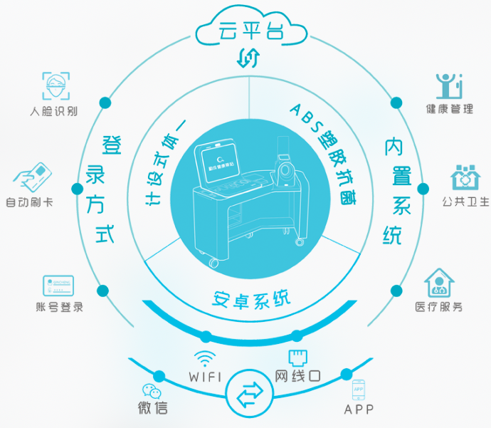 勤成“健康驛站”應(yīng)由設(shè)備主機(jī)與配套的醫(yī)療檢測(cè)設(shè)備組成。產(chǎn)品設(shè)計(jì)符合醫(yī)療健康“互聯(lián)網(wǎng)”化的需求,采用一體式設(shè)計(jì),ABS塑膠抗菌材質(zhì),安卓系統(tǒng),集成度高。檢測(cè)設(shè)備多樣且簡(jiǎn)便易用,操作流程清晰并具備相應(yīng)的語音引導(dǎo),社區(qū)居民可輕松使用。 “驛站”軟件平臺(tái)應(yīng)基于安卓系統(tǒng),可以便捷的實(shí)現(xiàn)平臺(tái)維護(hù)與功能升級(jí)。軟件平臺(tái)對(duì)WIFI、4G通訊應(yīng)具有良好的支持,可以方便通過微信、居民健康A(chǔ)PP等向用戶推送健康資訊與數(shù)據(jù)。