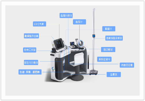 健康驛站配置身高體脂分析儀、額溫計(jì)、全自動(dòng)血壓計(jì)、血氧儀、血脂分析儀、尿液分析儀、心電、肺功能儀、血糖尿酸膽固醇檢測(cè)儀等醫(yī)療檢測(cè)設(shè)備。社區(qū)居民可自助檢測(cè)血壓、血氧、血糖、總膽固醇、尿酸、脈搏、心率、肺功能、身高體重、體溫、BIM等體征數(shù)據(jù),還可在醫(yī)生協(xié)助下完成12導(dǎo)聯(lián)心電檢查、尿生化檢查等常規(guī)項(xiàng)目。