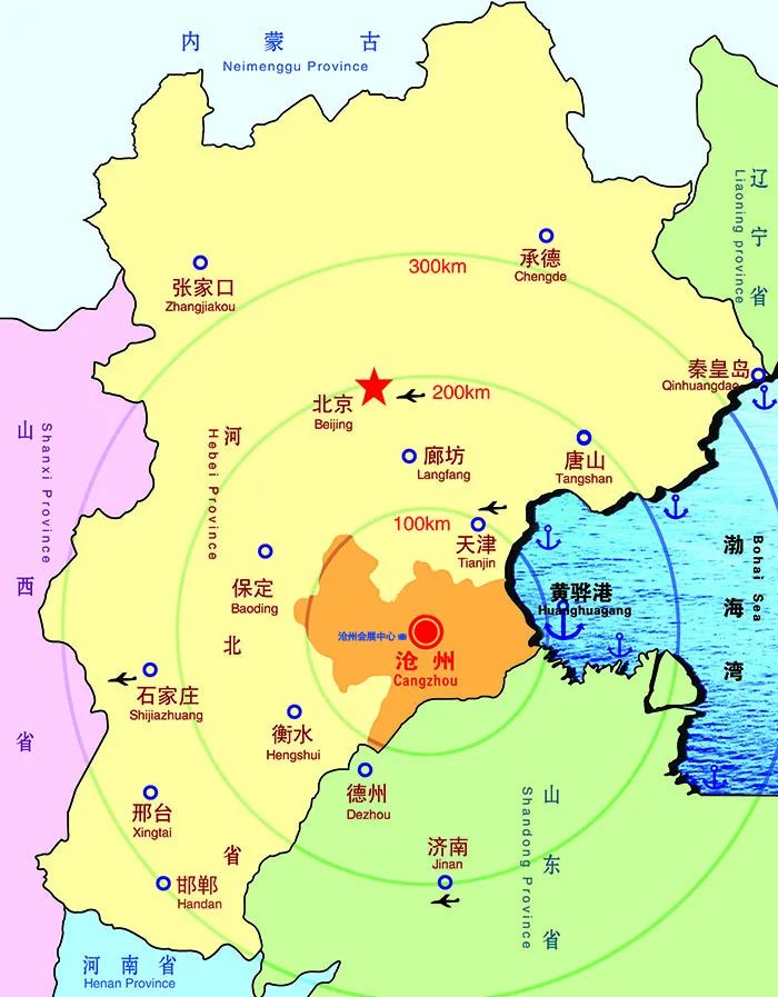 滄州,東瀕渤海,西望太行,南接齊魯,北依京津,是鑲嵌在廣袤華北平原上的一顆璀璨的明珠。距北京200公里,距天津120公里,距河北省石家莊市250公里,距山東省濟南市220公里,有著獨特的區(qū)位優(yōu)勢。滄州會展中心位于滄州市新城區(qū)西南部,京滬高速公路和環(huán)城高速公路在區(qū)內(nèi)設有出口,交通便捷。新區(qū)距北京、石家莊、濟南等京畿重鎮(zhèn)均在兩小時經(jīng)濟車程之內(nèi),距天津僅需一小時。目前,穿行于滄州市的高速公路已達十一條之多,構成了縱橫交錯的陸路交通網(wǎng),發(fā)達的交通使得滄州市不僅強化了首都門戶的作用,也成為通往滬、魯、豫、晉的重要交通樞紐城市。隨著京滬高速鐵路的通車,滄州已躋身京滬高鐵俱樂部,成為通聯(lián)中國華東、華北兩個最重要熱點經(jīng)濟區(qū)的節(jié)點城市和二十四個沿線乘降站點之一,乘高鐵到北京51分鐘,到上海也僅需四個多小時。同時,京滬、京九、神黃、邯黃等鐵路也在滄州構成了兩縱兩橫的軌道交通網(wǎng),進一步豐富了這里的物流選擇。