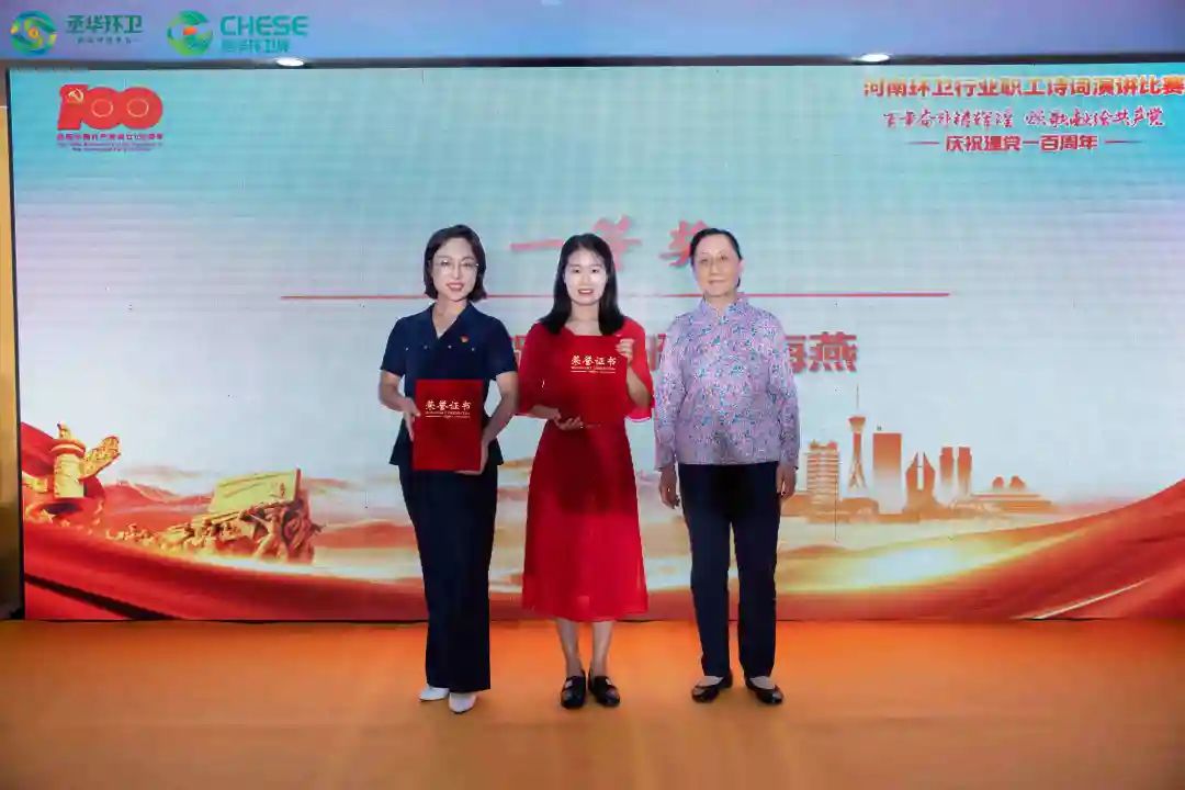 值建黨百年之際,河南省廣大環(huán)衛(wèi)干部職工以詩(shī)詞演講比賽的形式,歌頌黨的領(lǐng)導(dǎo),展望環(huán)衛(wèi)事業(yè),以真實(shí)的身邊事跡反映環(huán)衛(wèi)精神,表達(dá)對(duì)黨和祖國(guó)的無(wú)限熱愛(ài)?;顒?dòng)氣氛熱烈,現(xiàn)場(chǎng)競(jìng)爭(zhēng)激烈,最終鄭州市環(huán)衛(wèi)局代表隊(duì)的李昭、岳海燕與南陽(yáng)市環(huán)衛(wèi)處代表隊(duì)的秦田璐并列第一名,獲得“丞華杯—河南省環(huán)衛(wèi)行業(yè)職工詩(shī)詞演講比賽”一等獎(jiǎng)。