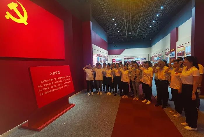 參觀結(jié)束前,全體黨員來到入黨宣誓臺前,面對鮮紅的黨旗,莊嚴(yán)肅穆地重溫了入黨誓詞。一句句鏗鏘有力的誓言彰顯了共產(chǎn)黨人的理想信念和責(zé)任擔(dān)當(dāng),堅定了終身堅守、矢志不渝的信念。