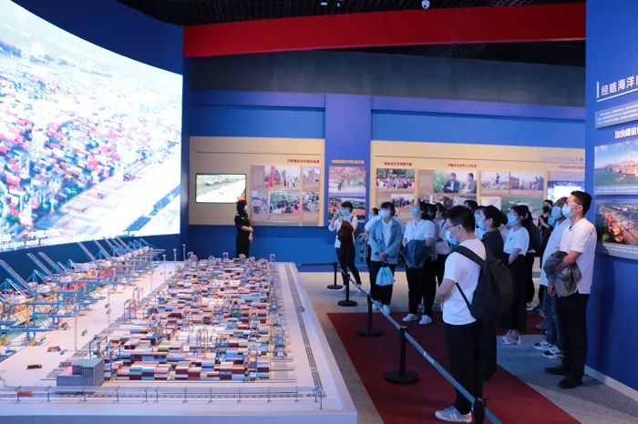 在講解員的帶領(lǐng)下,全體黨員仔細(xì)參觀了“篳路藍(lán)縷 苦難輝煌(1921—1949)”、“艱辛探索 砥礪前行(1949—1978)”、“勇立潮頭 改革開放(1978—2012)”、“走在前列 全面開創(chuàng)(2012—2021)”四個展區(qū)?,F(xiàn)場觀看了最早的《共產(chǎn)黨宣言》譯本、山東省人民政府成立時的第一面國旗、沂蒙六姐妹照片、濟南戰(zhàn)役復(fù)原場景、青島港全自動化集裝箱碼頭模型、山東省援助湖北醫(yī)療隊簽名隊旗等展陳圖片、實物場景和視頻短片。