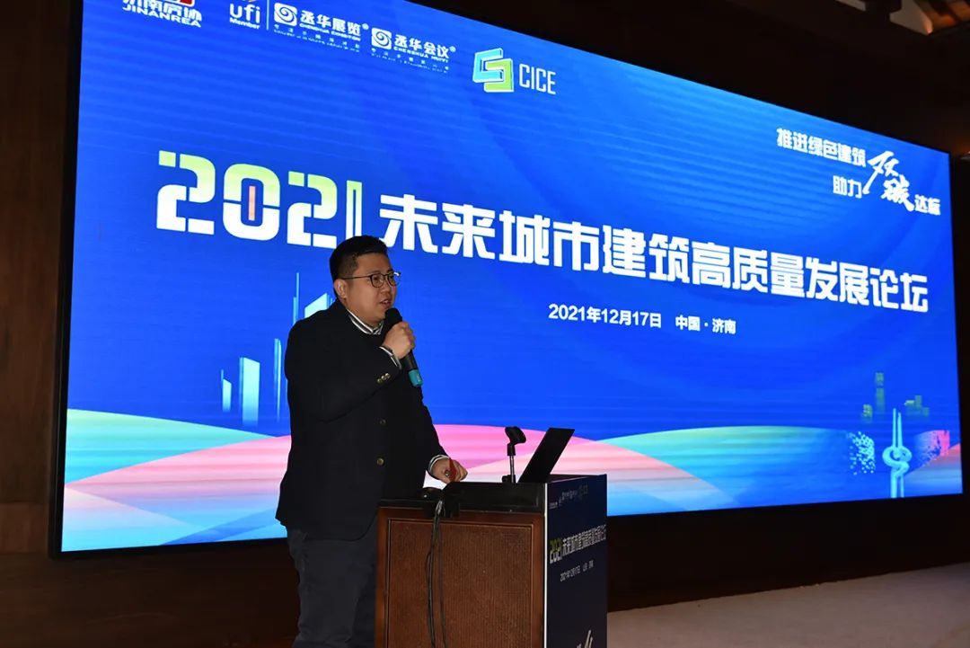 濟(jì)南市房地產(chǎn)業(yè)協(xié)會(huì)秘書長(zhǎng)于泉就“2021未來城市建筑高質(zhì)量發(fā)展論壇”做大會(huì)主持。