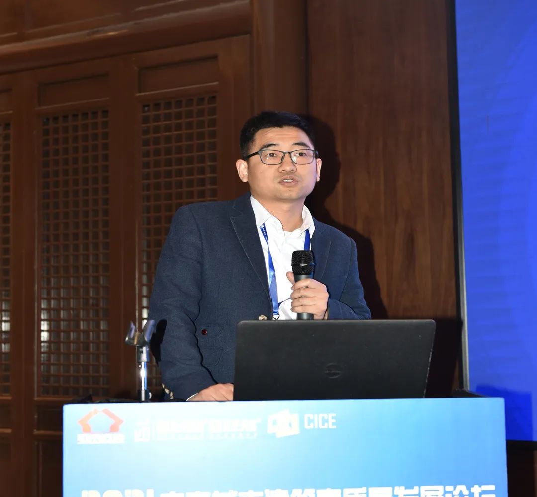 山海大象綠色建筑科技有限公司技術(shù)主任桑維林就“輕鋼裝配式被動(dòng)式建筑項(xiàng)目總結(jié)”現(xiàn)場(chǎng)進(jìn)行分享。