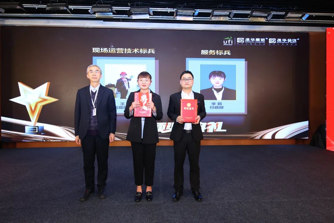在頒獎典禮現(xiàn)場,首先頒發(fā)的是現(xiàn)場運營技術標兵和服務標兵獎,這兩個獎項由王明、李莉兩位年輕的小伙伴分別摘得殊榮。