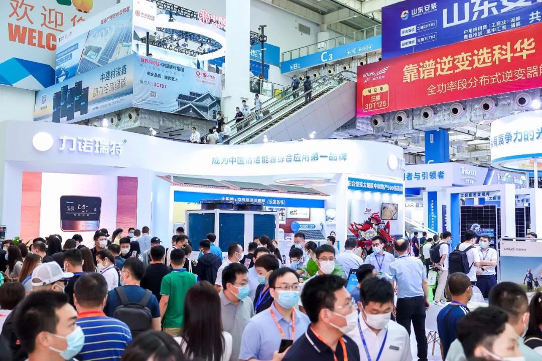 本屆“太陽(yáng)能展”是以“金色陽(yáng)光 清潔能源 雙碳引領(lǐng) 綠色發(fā)展”為主題,展示面積45000平方米,現(xiàn)場(chǎng)分為光伏、太陽(yáng)能+多能互補(bǔ)、智慧儲(chǔ)能、產(chǎn)學(xué)研和金融等展區(qū)。吸引了國(guó)網(wǎng)、華為、創(chuàng)維、TCL、比亞迪、隆基、中建材、通威、力諾、晶科、晶澳、阿特斯、中來(lái)民生、天合、正泰、錦浪、青山控股、固德威、陽(yáng)光電源、東方日升、禾望、科華、上能、中來(lái)、大海、海泰等全球500多家能源領(lǐng)軍企業(yè)參展,其中,世界500強(qiáng)企業(yè)7家,世界500強(qiáng)能源企業(yè)22家,全球前50強(qiáng)光伏企業(yè)有40多家參展、參會(huì),前20強(qiáng)光伏組件企業(yè)全部參展,前15強(qiáng)逆變器企業(yè)也盛裝亮相。