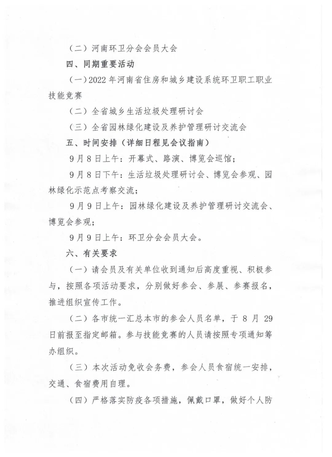 近日河南省市政公用業(yè)協(xié)會(huì)市容環(huán)境衛(wèi)生分會(huì)發(fā)布通知(豫市公協(xié)環(huán)【2022】11號(hào)),對(duì)9月8-9日在信陽(yáng)舉辦的河南省第七屆城鄉(xiāng)環(huán)境衛(wèi)生設(shè)施設(shè)備與固廢處理技術(shù)博覽會(huì)、園林展示交流會(huì)暨河南省市政公用業(yè)協(xié)會(huì)市容環(huán)境衛(wèi)生分會(huì)會(huì)員大會(huì)(以下簡(jiǎn)稱第七屆河南環(huán)衛(wèi)展暨園林展或活動(dòng))及相關(guān)活動(dòng)作了全面部署和強(qiáng)調(diào)要求。