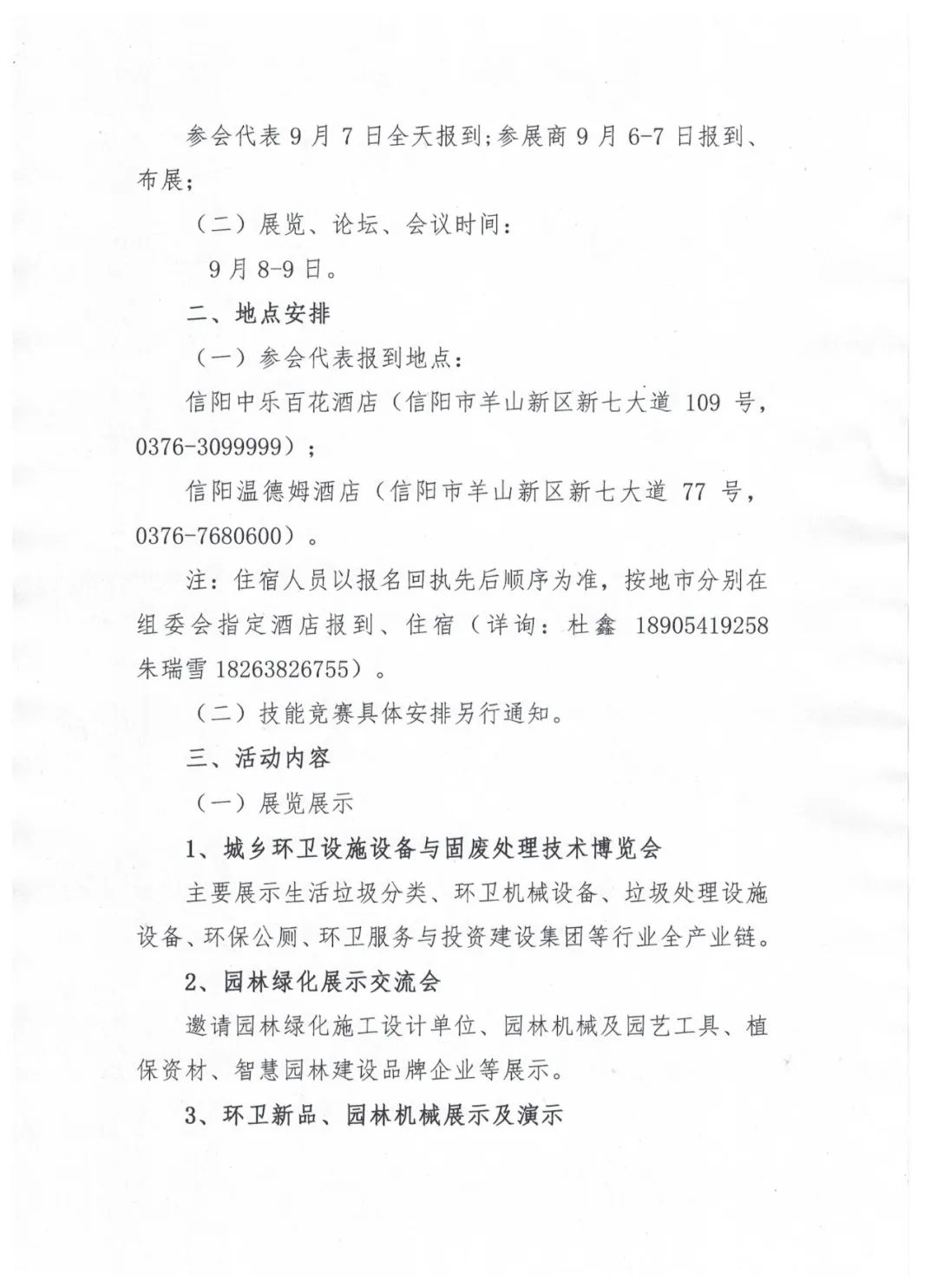 根據(jù)通知規(guī)劃安排,第七屆河南環(huán)衛(wèi)展暨園林展擬于9月8-9日在信陽(yáng)市舉辦,河南省市政公用業(yè)協(xié)會(huì)市容環(huán)境衛(wèi)生分會(huì)會(huì)員大會(huì)將于9日上午召開(kāi)。活動(dòng)同期,按照省住房和城鄉(xiāng)建設(shè)廳年度工作計(jì)劃及前期相關(guān)通知安排,還將舉辦2022年河南省住房和城鄉(xiāng)建設(shè)系統(tǒng)環(huán)衛(wèi)職工職業(yè)技能競(jìng)賽“雄獅重工杯”環(huán)衛(wèi)行業(yè)決賽,召開(kāi)全省城鄉(xiāng)生活垃圾處理研討會(huì)和全省園林綠化建設(shè)及養(yǎng)護(hù)管理研討交流會(huì)。