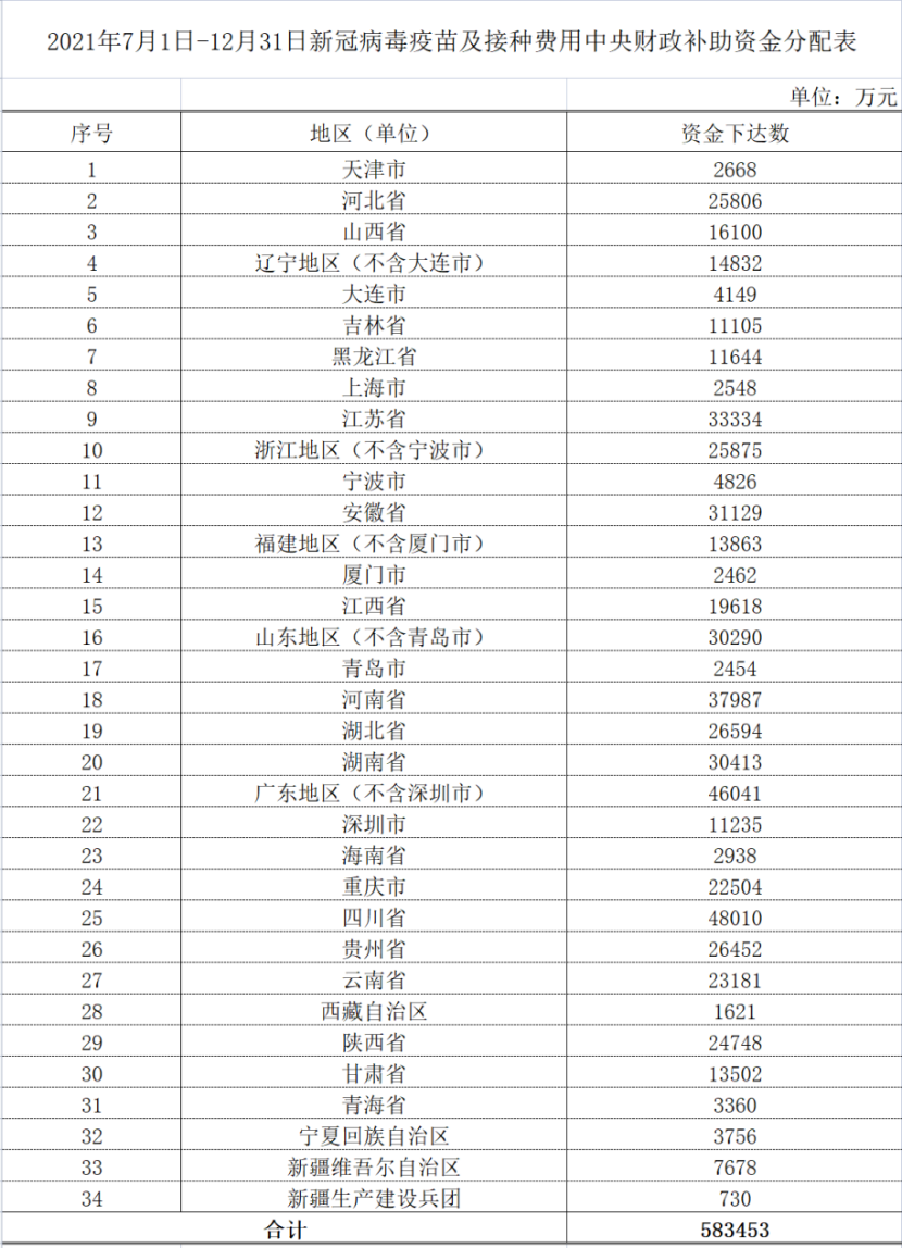 下達2022年新冠病毒疫苗及接種費用中央財政補助資金(第一批)58.3億余元。2022年重大傳染病防控經(jīng)費合計203.7億余元,提前下達156.4億余元,此次下達47.3億余元。
