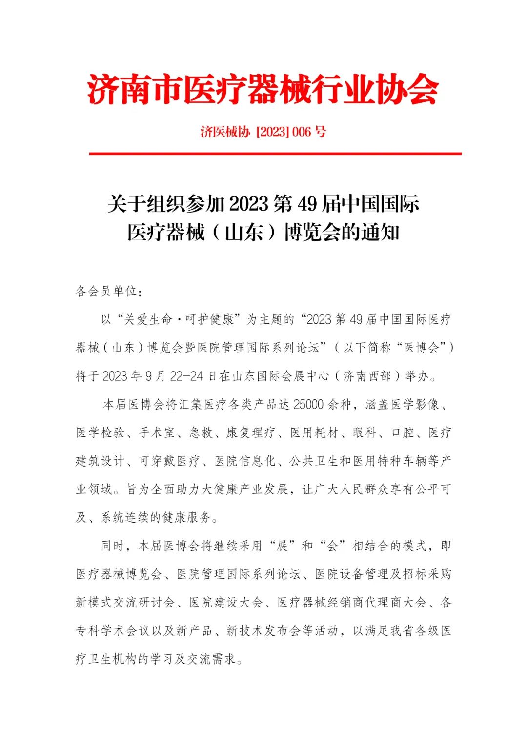 關(guān)于組織參加2023第49屆中國(guó)國(guó)際醫(yī)療器械(山東)博覽會(huì)的通知