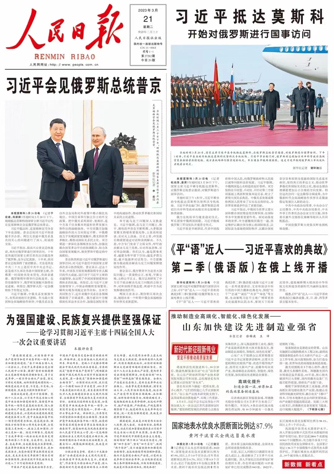 人民日?qǐng)?bào)頭版刊發(fā)題為《推動(dòng)制造業(yè)高端化、智能化、綠色化發(fā)展——山東加快建設(shè)先進(jìn)制造業(yè)強(qiáng)省》的文章。