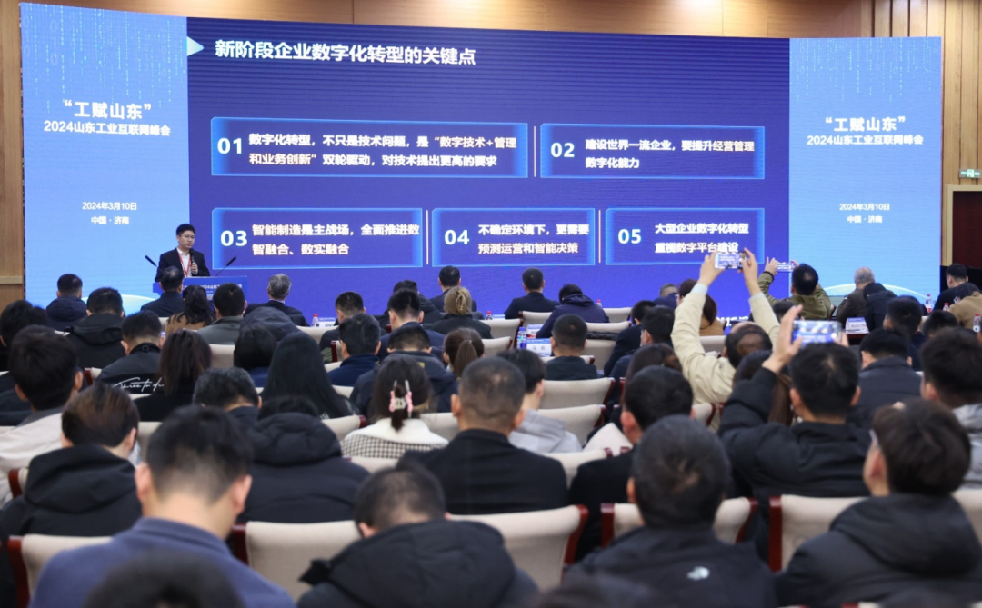 3月10日,以“加快工業(yè)數(shù)字化轉(zhuǎn)型 助力新型工業(yè)化發(fā)展”為主題的“2024山東工業(yè)互聯(lián)網(wǎng)峰會(huì)(簡(jiǎn)稱(chēng):峰會(huì))”在濟(jì)南成功召開(kāi)。本次峰會(huì)是“工賦山東”深度行活動(dòng)的重要組成部分,也是全省工業(yè)企業(yè)數(shù)字化轉(zhuǎn)型培訓(xùn)系列活動(dòng)之一,旨在深入貫徹全省新型工業(yè)化推進(jìn)大會(huì)精神,全面啟動(dòng)工業(yè)企業(yè)數(shù)字化轉(zhuǎn)型培訓(xùn)工作,加快工業(yè)“數(shù)轉(zhuǎn)智改”步伐,助推全省工業(yè)企業(yè)提速轉(zhuǎn)型升級(jí) 。