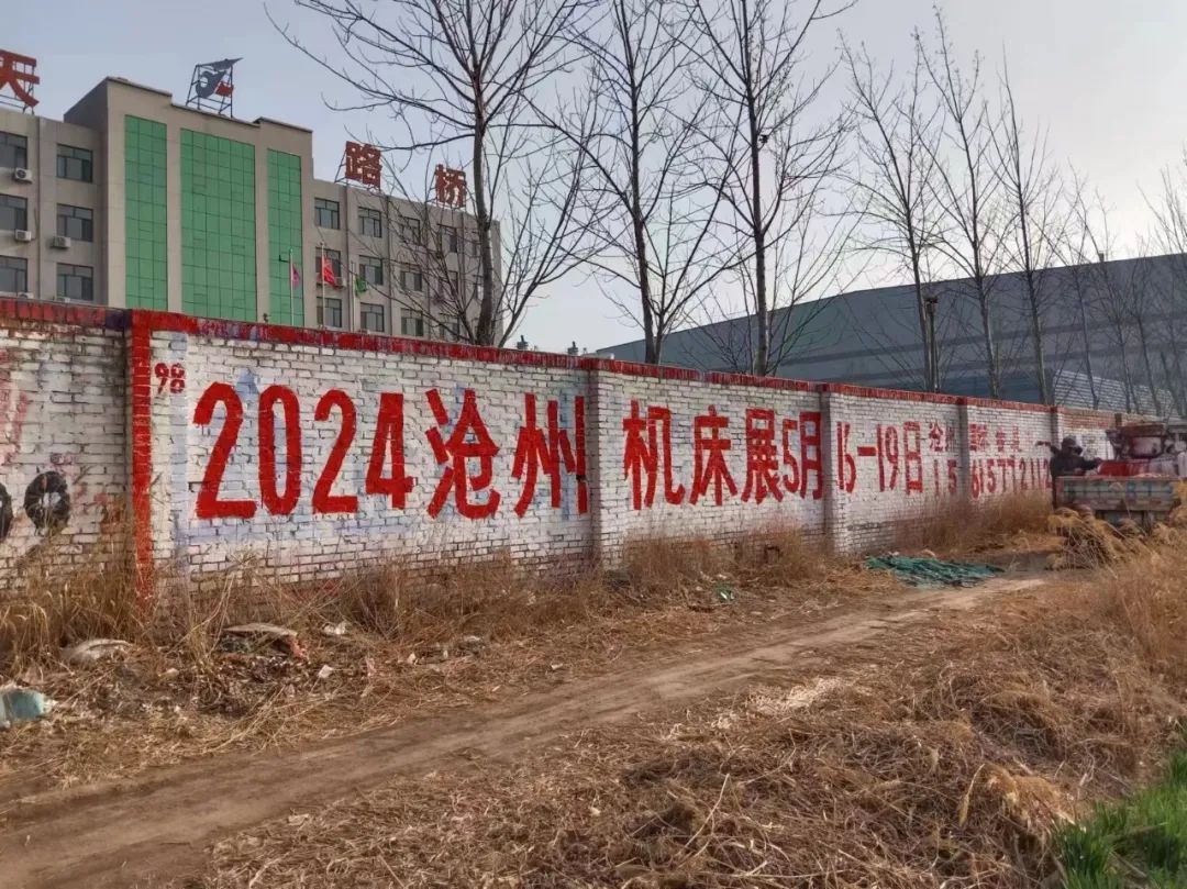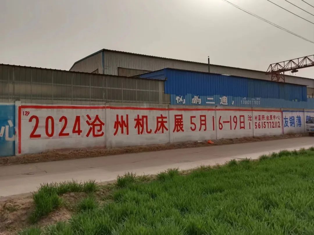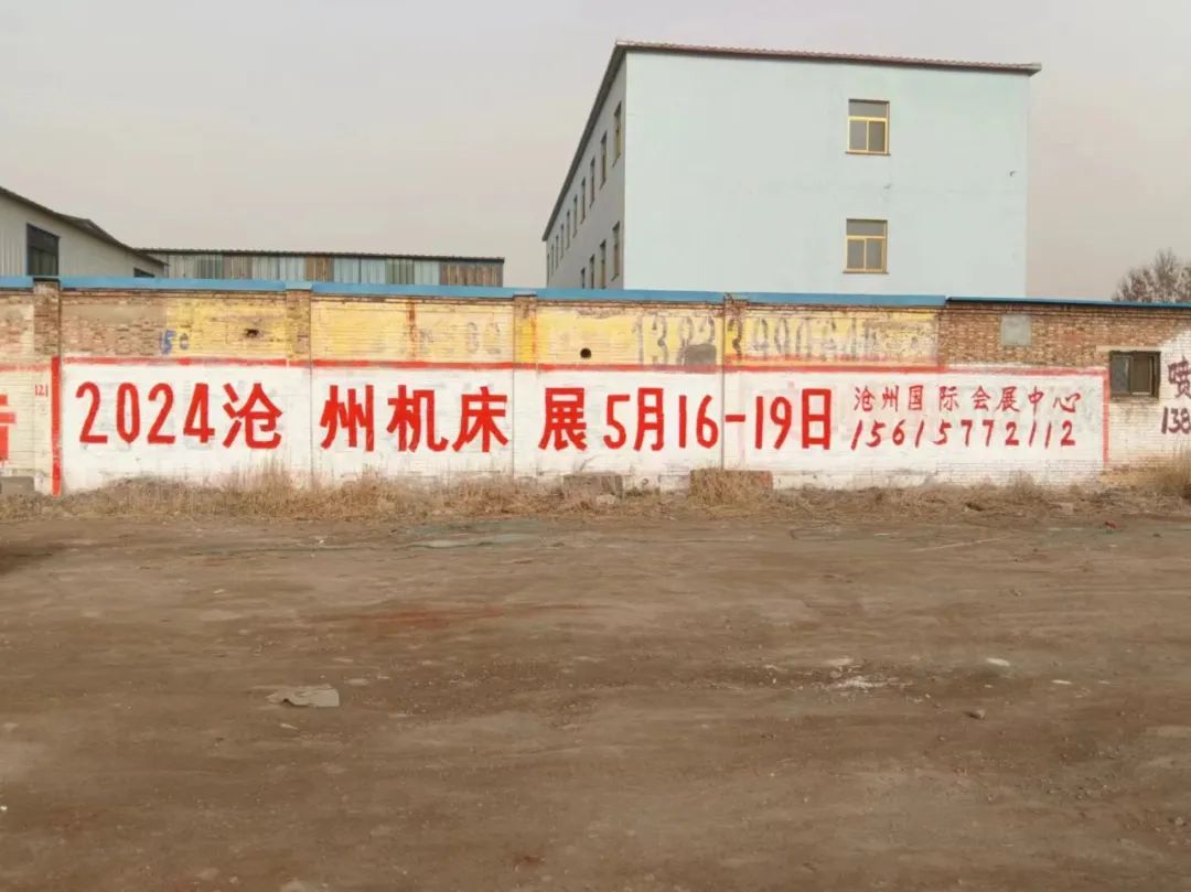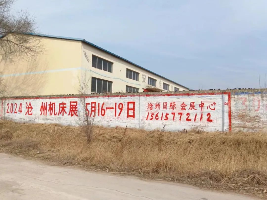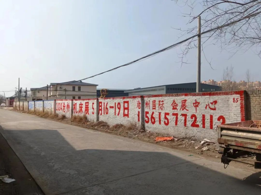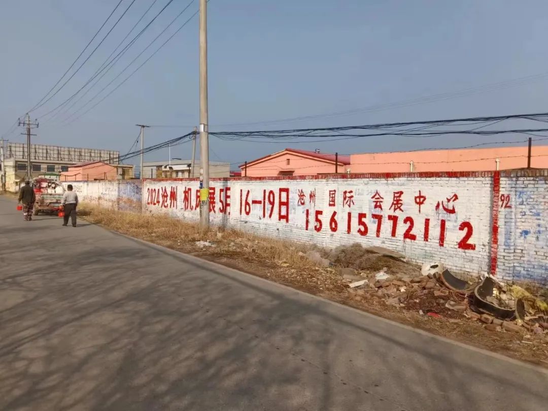 展會(huì)宣傳墻體廣告遍布在滄州及周邊地市,粉刷三百余塊墻體廣告。全面覆蓋相關(guān)工業(yè)園區(qū)、產(chǎn)業(yè)集群、國(guó)道省道等關(guān)鍵位置。