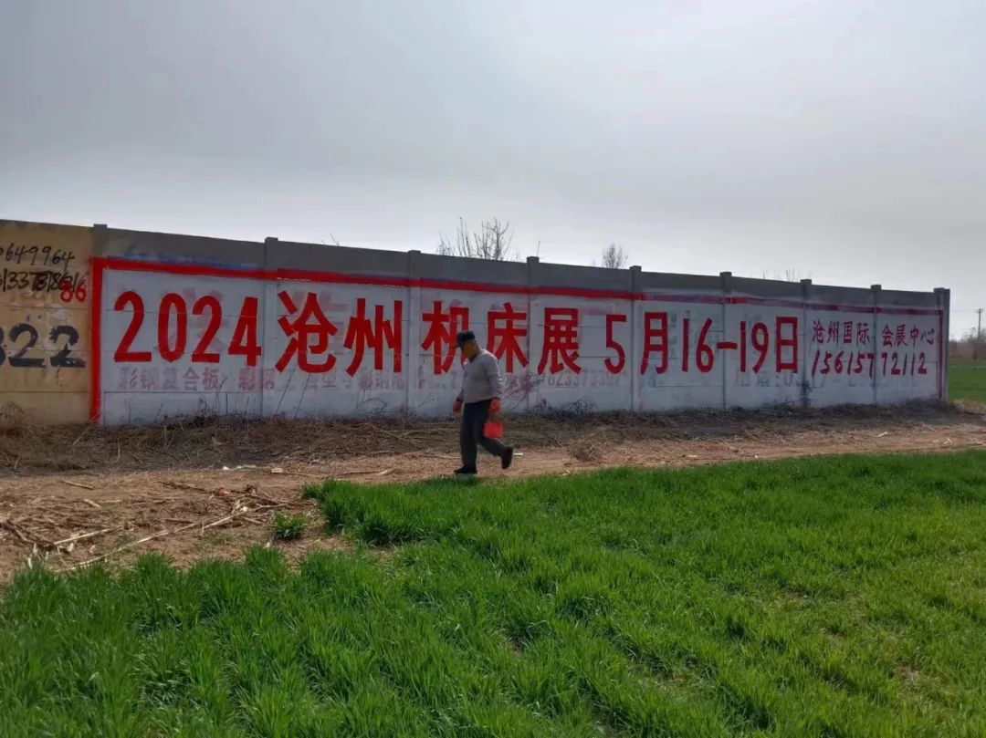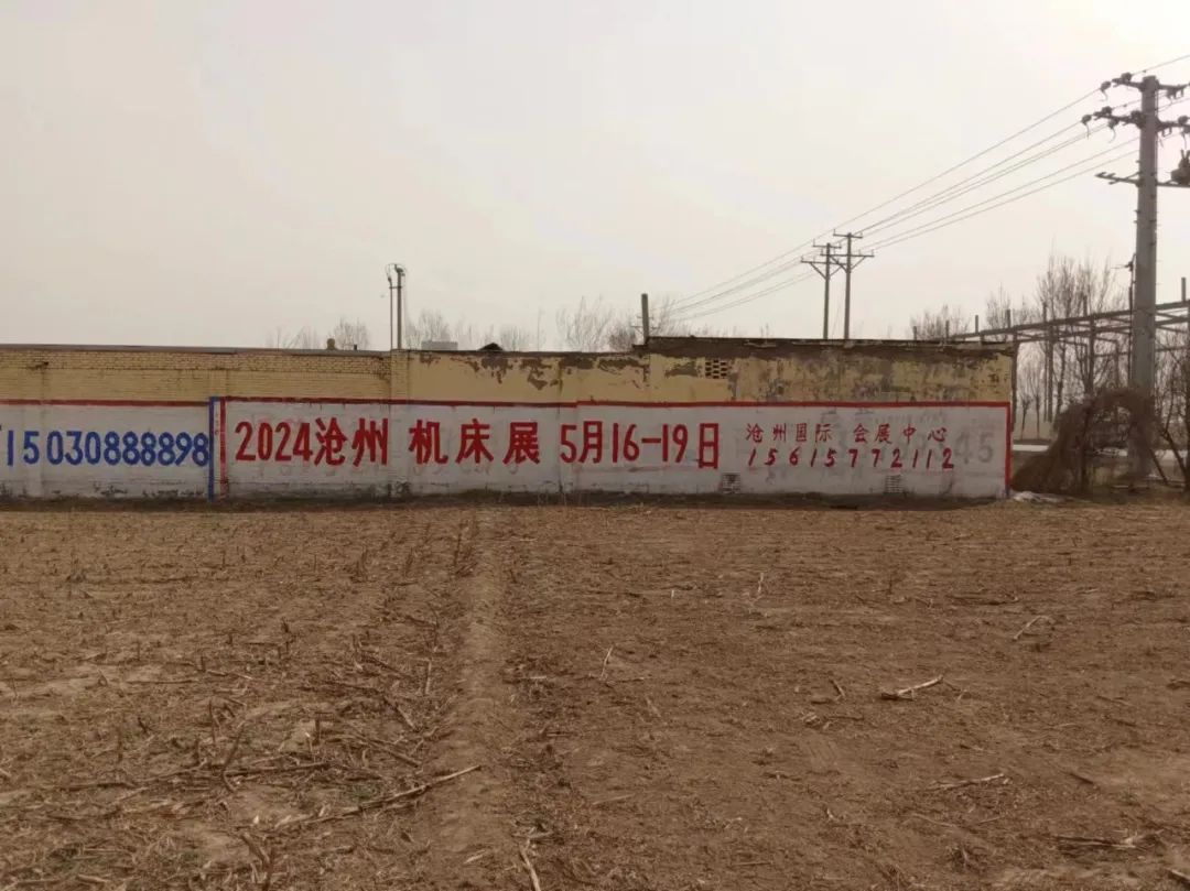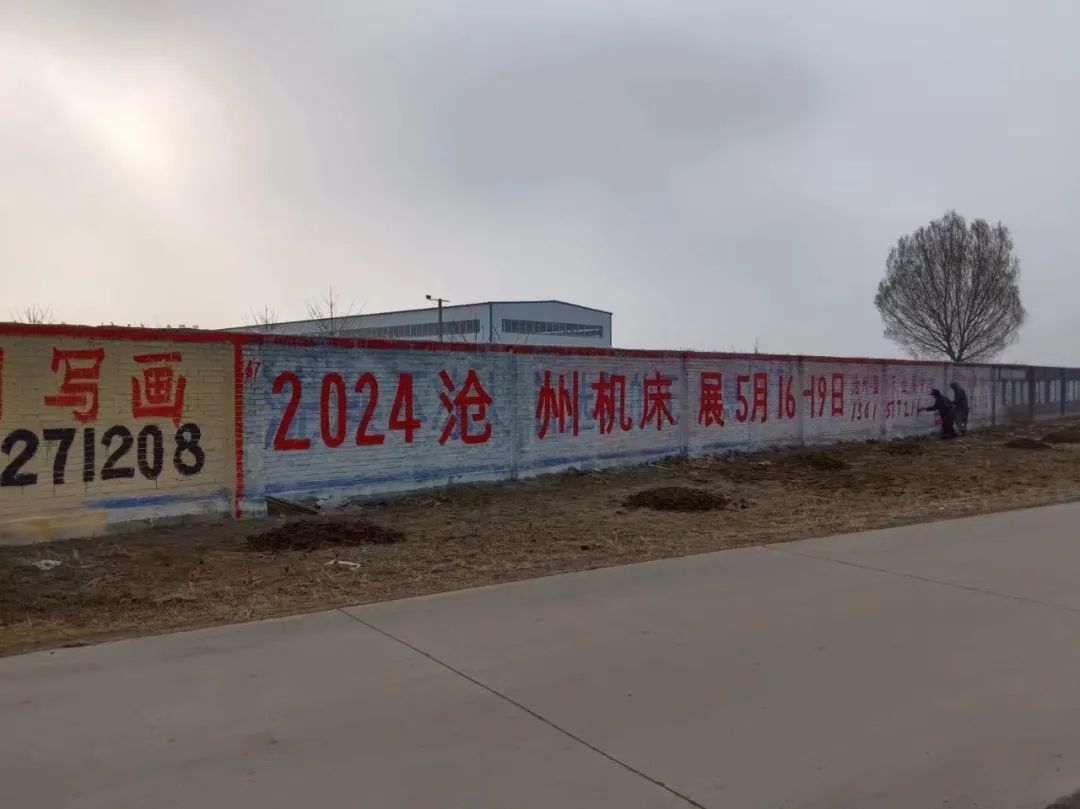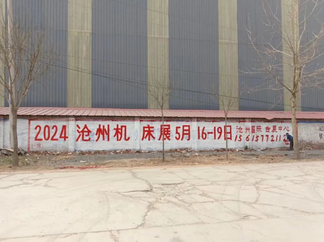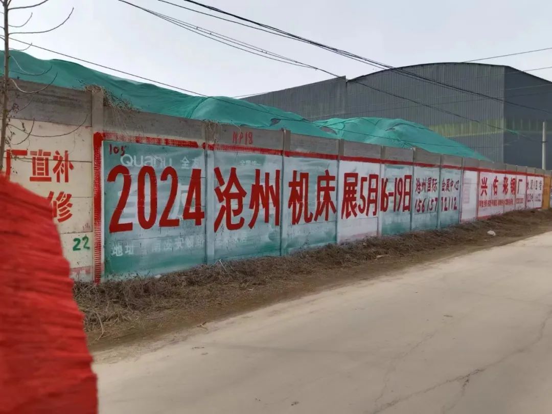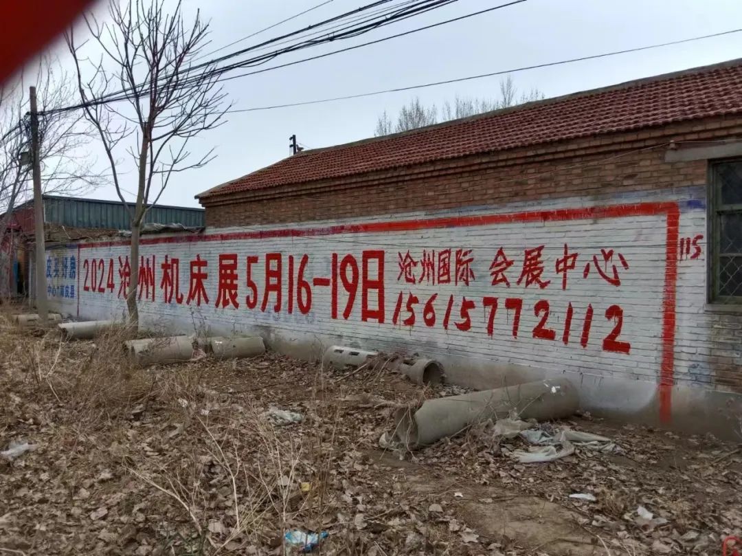 展會(huì)宣傳墻體廣告遍布在滄州及周邊地市,粉刷三百余塊墻體廣告。全面覆蓋相關(guān)工業(yè)園區(qū)、產(chǎn)業(yè)集群、國(guó)道省道等關(guān)鍵位置。