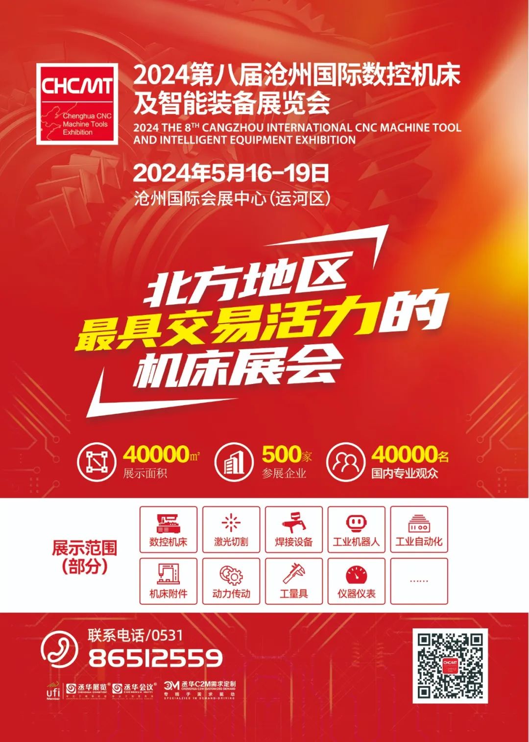 本次將繼續(xù)啟用滄州國(guó)際會(huì)展中心室內(nèi)全館展示,重點(diǎn)展示數(shù)控機(jī)床、加工中心、激光切割設(shè)備、焊接設(shè)備、工業(yè)機(jī)器人、特種加工設(shè)備、動(dòng)力傳動(dòng)、檢驗(yàn)和測(cè)量設(shè)備以及各種機(jī)械功能部件等產(chǎn)品。