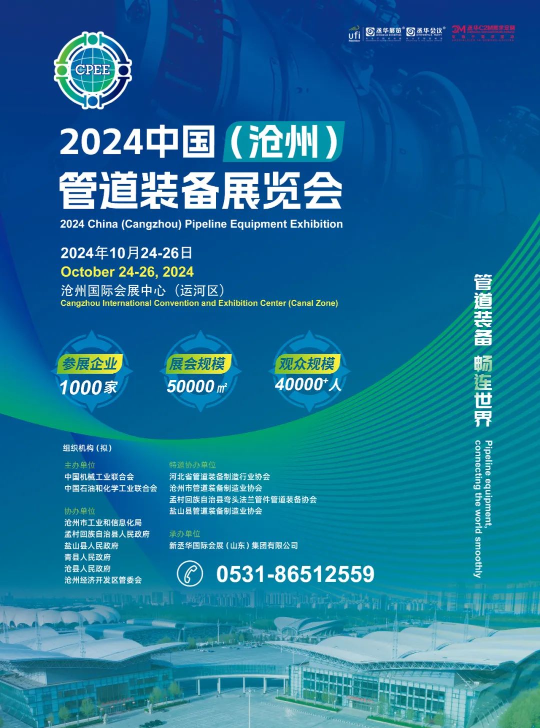 隨著中國管道裝備制造業(yè)的快速發(fā)展,滄州市憑借其在管道裝備領域的產業(yè)基礎和優(yōu)勢,已成為國內重要的管道裝備制造基地。為進一步提升滄州管道裝備產業(yè)的影響力,實現(xiàn)高質量發(fā)展,由中國機械工業(yè)聯(lián)合會、中國石油和化學工業(yè)聯(lián)合會共同主辦的2024中國(滄州)管道裝備展覽會(簡稱:滄州管道展)將于10月24-26日在滄州國際會展中心舉辦。