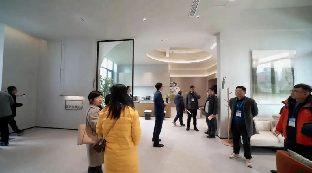 上午,觀摩團率先抵達位于嶗山區(qū)CBD核心區(qū)域的銀豐玖璽城?珺府。該項目憑借卓越品質(zhì),成為青島市標桿人居高端大盤。小區(qū)內(nèi)配套設(shè)施極為豐富,3800平方米全運動會所和6大主題架空層空間,組合出約8000平米集社交、運動、藝術(shù)、休閑、娛樂等于一體的社群社交場。住宅首層架空層匠心規(guī)劃,室內(nèi)兒童活動、4點半學(xué)堂等多元空間有序分布,充分滿足業(yè)主日常生活與休閑需求。景觀布局以中心景觀軸線為核心,打造出層次豐富、愜意舒適的景觀環(huán)境。住宅外圍護結(jié)構(gòu)及建筑外窗熱工性能相較于普通建筑提高10%,節(jié)水器具用水效率等級達2級,采用戶式全熱回收新風(fēng)除霾系統(tǒng),綠色低碳環(huán)保,全方位守護業(yè)主健康生活。園區(qū)運用智慧化體系,人行及車行出入口采用無接觸式道閘門禁系統(tǒng),極大提升通行便捷性與安全性。