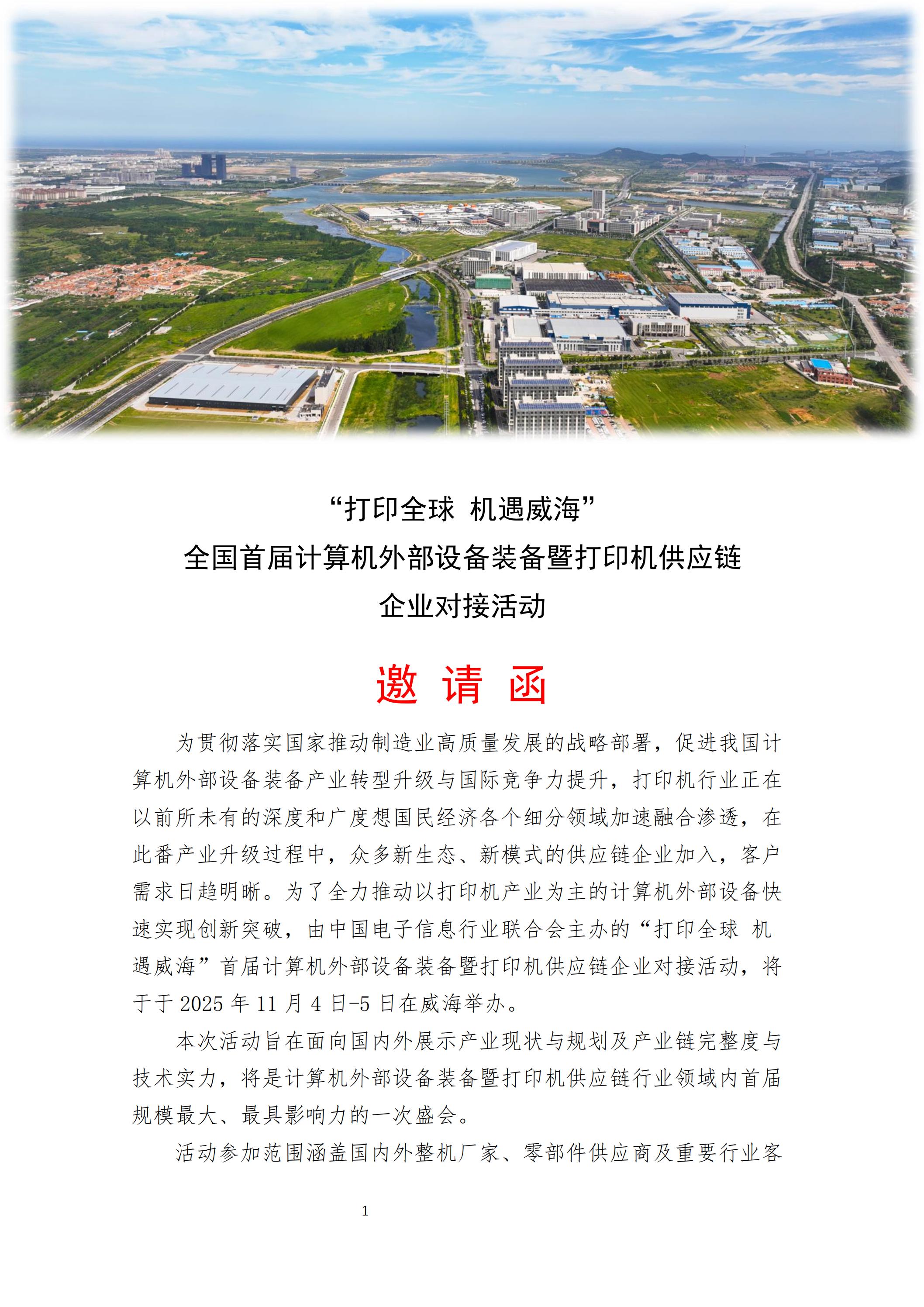 官方邀請函來了!全國首屆計算機外部設備裝備暨打印機供應鏈盛會11月在威海舉辦