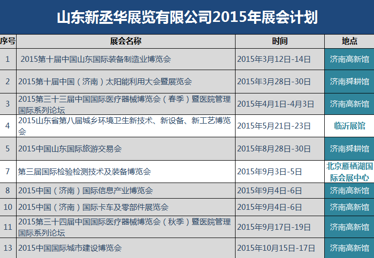 丞華展覽2015年全年展會(huì)計(jì)劃!